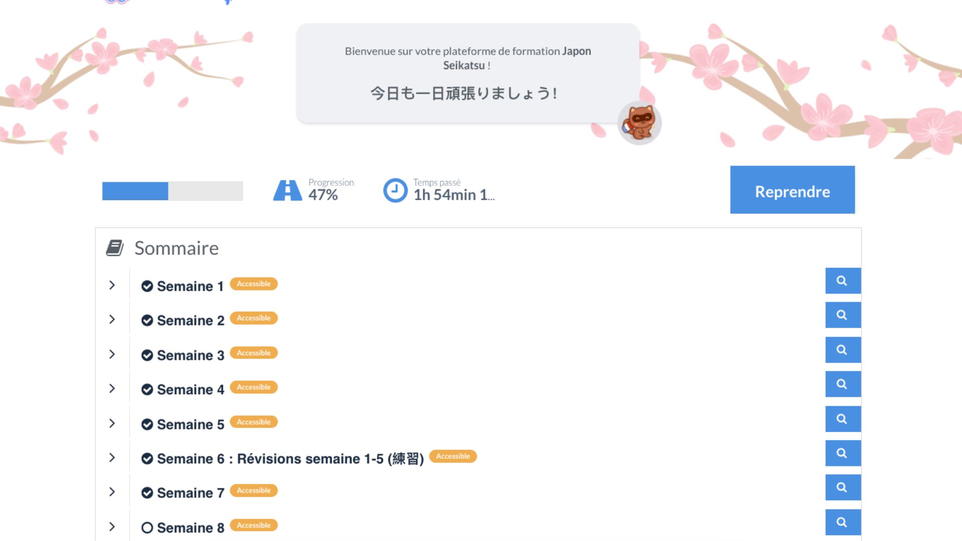 Notre formation de japonais de 52 semaines est délivrée de manière hebdomadaire. Chaque semaine, tu recevras une nouvelle semaine de cours.